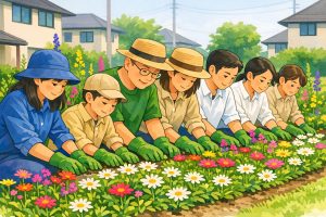「渋江公園」は『キャプテン翼』のキャラクター銅像もあり、多くの子どもたちに親しまれています。