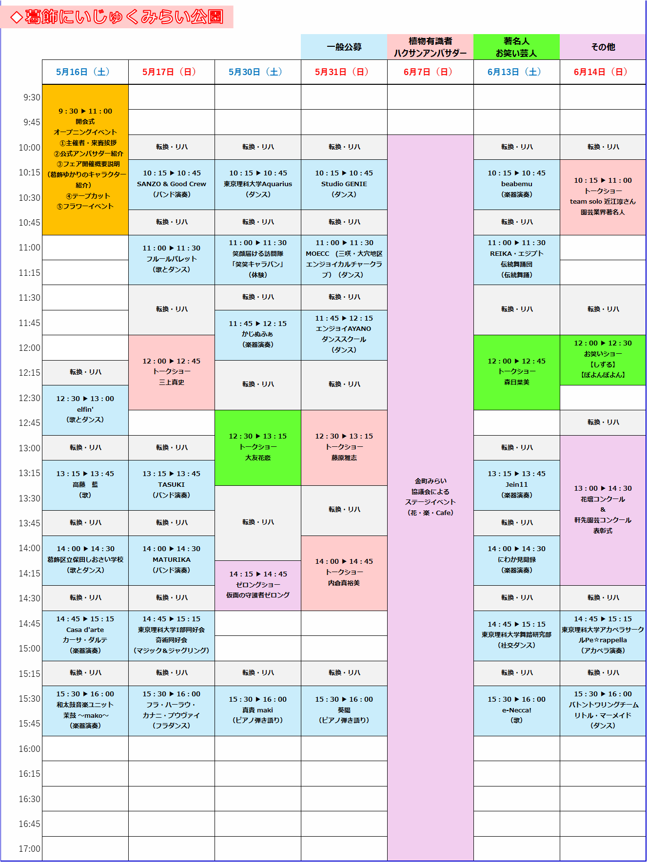 TOPイベント情報【葛飾にいじゅくみらい公園】ステージイベントタイムテーブル