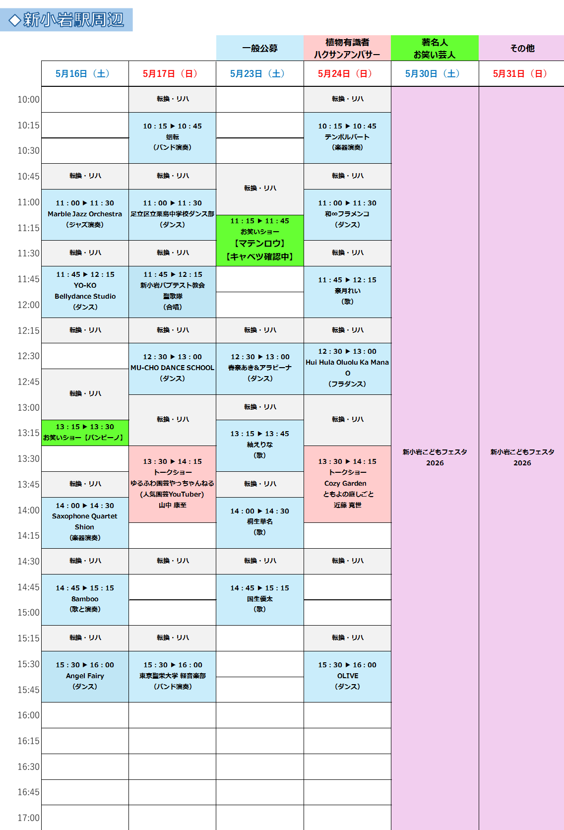 【新小岩駅周辺】ステージイベントタイムテーブル